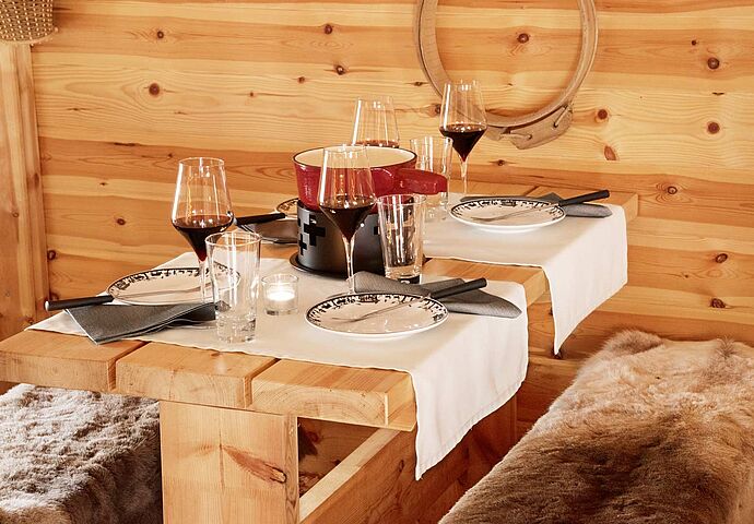 Alpine Gemütlichkeit im Walliser Chäs-Stübli.
