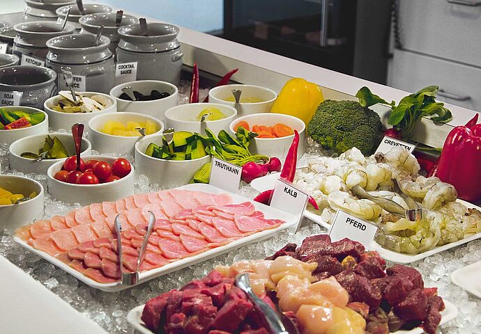 Geniessen Sie unsere Hausspezialität mit leckeren Fleisch- und Fischstücken, welche im Fischsud, Weinsud oder in einer Boullion am Tisch zubereitet werden.